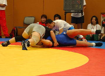 タックルから腕とりであっという間にフォールの体勢へ