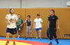集まったのは、新旧世界チャンピオン8人(日本選手3人)を含めた11か国49選手。前日に到着し、移動の疲れや時差ぼけ、外の気温34.7度という暑さの中、全日本女子連盟の栄和人強化委員(愛知・中京女大付高教)の指導のもと、スパーリングを中心に約3時間、汗を流した。
