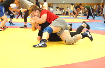 75kg級世界チャンピオンのヴィトコウスカ(下)に、ファイト満々で挑む浜口京子。
