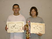 全日本社会人選手権最終日は7月14日、東京・駒沢体育館で一般フリースタイル・女子・マスターズが行われ、アトランタ五輪代表82kg級代表の横山秀和(秋田市役所)が84kg級を制し、最優秀選手賞を獲得した。女子の最優秀選手賞は51kg級優勝の清水美里(JBクラブ)。=右写真は夫婦で優勝した本名栄仁・亜里夫妻。