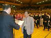 昨年に続き山梨学院大との決勝戦。120kg級の試合を沢田直樹が9分間フルタイムの死闘の末に制した瞬間、拓大のベンチ、応援席が沸き返った。相手チームとの礼が終わるやいなや応援席から駆け下りた下級生選手も含めた選手は西口コーチのもとへ駆け寄り、胴上げを求めた。西口コーチは、感激の涙を隠すかのように「オレじゃない。天谷監督だ!」と言い放ち、選手を"追い払った"。