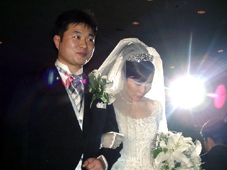 新郎新婦の入場! 新郎はちょっぴりすまし顔。