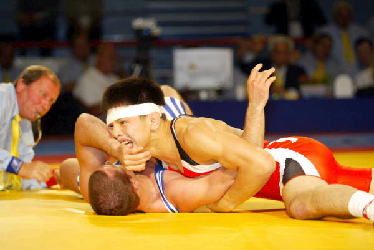 世界選手権初出場の55kg級の豊田雅俊(警視庁)は、1試合目を逆転勝ちしたあと、アジア3位のイム・ダオウォン(韓国)と対戦。先にパッシブを取ったものの、エスケープ・ポイントを許して1点を先行された。豊田がパッシブを取られた後、アトランタ五輪王者のシム・クォンホ(韓国)の得意技とよく似たハイ・ローリング(胸の辺でグリップを取って返しローリング)で3点を取られ、勝敗の流れを完全に持っていかれた。