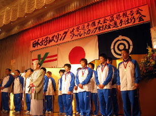 9月25日から地元開催のワールドカップ(10月11〜12日、東京・代々木第二体育館)に向けて強化合宿に入った日本女子代表チームが29日、合宿所となっている日本オリンピック委員会(JOC)の強化指定センター、櫻花レスリング道場のある新潟県十日町市で開催された「日本女子レスリング世界選手権優勝報告会・ワールドカップ出場選手壮行会」に招かれた。