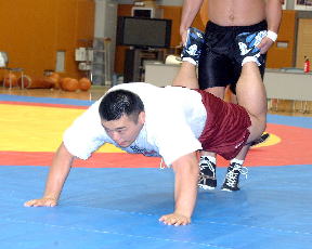 日本のグレコ最重量級は、ソウル五輪で出口一也が8位入賞を果たし、アトランタ五輪で鈴木賢一が10位入賞と、けっこう奮戦している。特に練習をやったこともある鈴木の戦いぶりは参考になり、「あの一発フォール技を身につけたい。思い切って仕掛けてみたい」と、“伝統”継承を誓った。(取材・文・写真=樋口郁夫)
