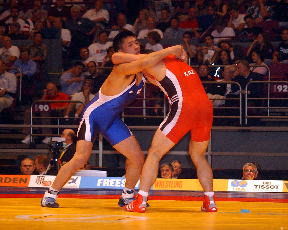 フリースタイルでは96年アトランタ五輪以来の世界選手権となった横山秀和(秋田・秋田商高教Iは、ブランクも感じさせず初戦勝利。しかし予選3回戦で世界5位に入ったこともあるマゴメド・クルグリエフ(カザフスタン)に延長のクリンチで敗れ(先に手が離れてしまった)、今回は五輪への道を閉ざされてしまった。