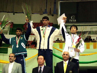 74kg級で3位に入賞した小幡邦彦(右)
