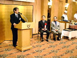 福田会長は同監督をアテネ五輪のコーチに選ぶことをほのめかして同監督のアピールに答え、「手品とかをやって選手をリラックスさせるのがうまい」と評価。「励みとなる賞をいただき、ヨネックスさんに感謝したい。ただ、レスリングではヨネックス製のグッズを使うことがないのが残念。選手の尻をたたくラケットでもつくっていただきたい」と会場を笑わせた。