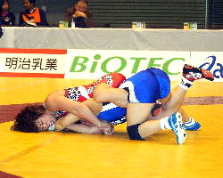 59kg級:山名慧(愛知・中京女大付高)「前は試合になると緊張して力が出せませんでした。自分に自信を持てなかったんです。今回はそうではなかったです。中京で吉田(沙保里)先輩とかにしごかれ、自信を持つことができたからかな、と思います。中西さんと別ブロックになった時、『決勝で戦おうね』って話しました。それが実現できてよかったです。まだ日本代表としてアジア選手権に出場するということはピンときませんが、優勝を目指してがんばります」