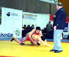 階級別では、55kg級ではロシアが2000年の世界ジュニア・チャンピオンのアレクサンダー・コントエフを出して、やっと出場権を取りました。この大会の優勝は一昨年のアジア・ジュニア・チャンピオンのヨゲシュワー・ダート(インド)。インドは6階級でアテネのキップ切符を取りました。