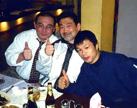 60kg級では、2002年のアジア大会優勝のオユンブレグ・プレブバータル(モンゴル)が4位に入り、やっとアテネのキップを手にしました。一方、欧州3位のペトル・トアルカ(ルーマニア)が準々決勝戦でカタールのアブデュラハンに負け、アテネに行けなくなりました。(左写真は、左から筆者のビル・メイ氏、和久井始コーチ、優勝した井上謙二)