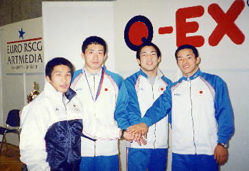 いち早くアテネ五輪出場を決めた後輩たちから祝福される横山