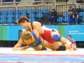 約7ヶ月後に激戦の舞台となるアテネのアノリオシア・ホールで行われたプレ五輪大会で、72kg級の浜口京子(ジャパンビバレッジ)が燃えた。まだ五輪の日本代表に決まってはいないものの、五輪会場での試運転で優勝したことでアテネへの道に一歩近づき、本番へ向けての最高の縁起をつくった。