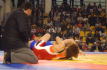 【評】バックを取った斉藤は、相手の胴にからみつき横崩し。5秒ルールを使って3点をあげ、これを3度繰り返して10点差をつけた。