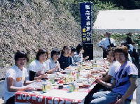 ○…合宿所のある十日町市塩之又で5月2日、「山菜まつり」が開催され、参考試合の計量を終えた選手・役員30数名が参加した。初夏の好天のもと、真心のこもった山菜づくしの料理に下鼓(したづつみ)を打ち、緑鮮やかな蓬を入れた草餅つきに挑戦してリフレッシュ(写真左)。合宿を支援する地元住民との交流で、アジア大会、世界選手権に向けての活力を注入された。