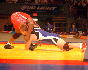 《経過》足がややすべったような吉田。その瞬間、ジョージにバックを奪われた。しかし片足タックルで1−1へ。タックルで場外へ出して2−1とリード。