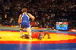 第2ピリオドに入り、1分ころ、タックルを受け止めて2−1へ。2分26秒、パッシブを取ると、パーテールポジションからこん身の力をこめて横崩し。モンゴメリーの肩が返り、貴重な2点を入れた。残り20数秒、相手の攻撃をかわし、5度目の世界一にたどりついた。