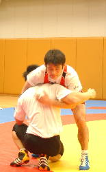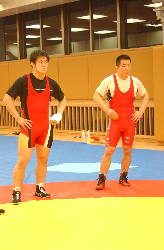 | グレコローマンを支える松本慎吾(左)と永田克彦。 |