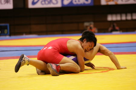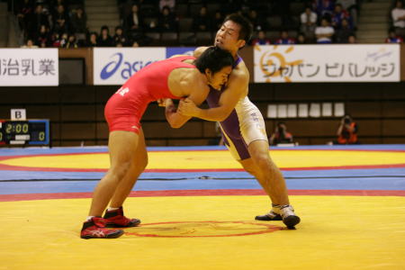 グレコローマン学生二冠王の鶴巻が、準決勝でアテネ五輪代表の永田克彦を撃破。勢いに乗って決勝で昨年の全日本王者の菅太一を破り、初優勝を遂げた。