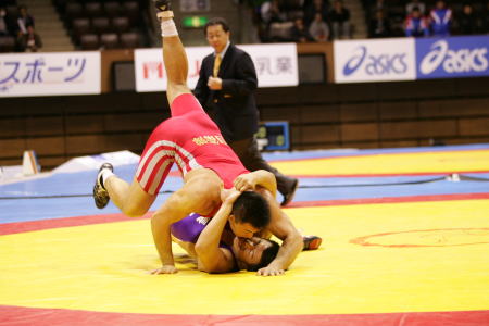 | ▼2回戦 森角裕介(長野県協会)○[フォール、3:10]●日垣貴文(国士大)