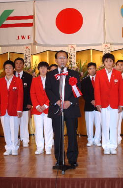 女子は全員がメダル獲得、男子は1952年のヘルシンキ五輪からのメダル獲得の伝統を守ってくれました。この成績におごらず、あすからまた北京五輪を目指してがんばります。後援、協力、ご指導いただいた皆様に深く感謝いたします。故八田一郎先生に日本のレスリングを育てていただき、男子の強さがあったからこそ、女子の今日につながったものです。諸先輩に感謝し、後援していただいた皆様に感謝したいと思います」