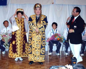 日本協会から感謝の品が贈呈された。ウズベキスタンの貴族の衣装。。