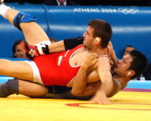 アテネ五輪レスリング競技は8月29日、フリースタイル3階級の準決勝などが行われ、予選リーグを勝ち抜いて準決勝へ進出した60kg級の井上謙二(自衛隊)は、マスード・ヨカール(イラン)に延長で敗れ、3位決定戦へ回ることにあった。一時は4−2、4−3とリードしながら、ラスト7秒に技術回避の痛恨の1点を失い、延長へ入ってタックルを決められた。