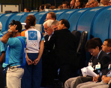 決勝トーナメント1回戦 ●[3−5] Armen Nazarian(ブルガリア) FILA副会長の福田富昭・日本協会会長(中央右)も必死に抗議したが…。