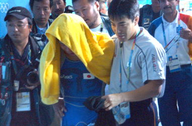 アテネ五輪レスリング競技第5日は8月26日、アテネ市のアノリオシア・オリンピック・ホールで男子グレコローマンの決勝トーナメントが行われ、60kg級の笹本睦(綜合警備保障)はアトランタ五輪とシドニー五輪の覇者で、2002・03年世界チャンピオンのアルメン・ナザリアン(ブルガリア)と対戦。2−3から仕掛けた俵返しを、ナザリアンが手を笹本の足にかけて防ぎ、1度は反則で笹本に2点が上がったが、ビデオ判定の結果、反則とはならない不可解な判定で試合が続き、3−5で敗れた。5・6位決定戦へ回ることになった。