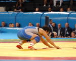 3−3のまま終盤へ入り、技術回避の警告(パーテールポジションの防御で相手の手首を固くつかんだ)を受け、さらにローリングで回された浜口の目に映った電光掲示板には、自分が4−5の1ポイント差で負けていると映った。浜口道場の道場訓「万来の氣合」で最後まで攻め、執念で1ポイントを獲得。同点となって延長へ入るはずだった。だが、電光掲示板には王旭の6−4での勝利が示されていた。最初の電光掲示板のスコアが間違っていたのだ。