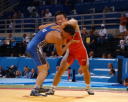 《経過》開始から1分11秒、コボノフがパッシブを取り、粘った末にローリングを決めて2点を先制。永田は2分36秒、パッシブを取ってパーテールポジションで攻めるが、エスケープされて1失点。すぐにバックを取って1−3としたが、分岐点の3点目を取られてしまった。第2ピリオド、胴タックルで攻めて相手の場外逃避をさそって1点。このあとパッシブを取るなど攻めに攻めたが、ポイントにはつながらなかった。