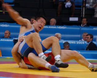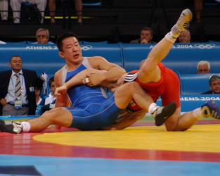 アテネ五輪レスリング競技第4日は8月25日、アテネ市のアノリオシア・オリンピック・ホールで男子グレコローマンの後半3階級がスタート、60kg級の笹本睦(綜合警備保障)が初戦を白星でスタートした。