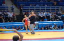 《経過》メルニクが飛行機投げで1点を先取。伊調もタックルで1点を返し1−1。第2ピリオドはメルニクがパッシブを取るが、グラウンド攻撃は決まらない。伊調がラスト1分10秒に引き落として1点をリードし、3点ノルマで延長へ。メルニク有利のクリンチから、メルニクは巻き投げを決めて2−2へ。そのまま一進一退の攻防が続き、パッシブの数の差でメルニクの手が上がった。