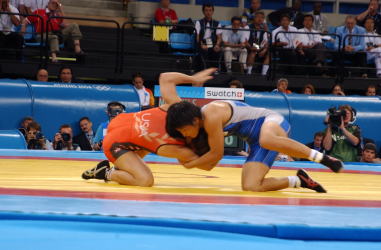 アテネ五輪レスリング競技第2日は8月23日、アテネ市のアノリオシア・オリンピック・ホールで女子4階級の決勝が行われ、決勝へ進んだ3選手のうち、55kg級の吉田沙保里(中京女大)と63kg級の伊調馨(中京女大)が金メダルを獲得した。