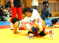 しかし、伊調馨の成績を振り返ってみるなら、金メダルに当確ランプがついていることは間違いない。マクマンとの対戦にしても、世界選手権の1か月後のワールドカップでは5−0で快勝しており、実力の違いは明白。中京女大の栄監督も舌を巻くほどの“度胸のよさ”というか、ものごとにに動じない精神力は、金メダルを取るに十分な武器。国内最後の合宿でアテネへ持っていくものを問われると、「梅干、お餅、お米、ラーメン、うどん…」と、遠足に行く前の子供のように無邪気に話したほど。