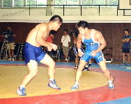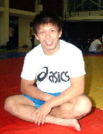 このクラスはシドニー五輪で完ぷなきまでにやられたアルメン・ナザリアン(ブルガリア=アトランタ・シドニー両五輪、02・03年世界チャンピオン)がすば抜けていて、昨年世界2位、パンアメリカン無敵のロベルト・モンゾン・コンザレス(キューバ)が続いているという勢力図。やはりこの2人には挑戦者という意識になるようで、「持ち上げられないこと」が勝つための最重要課題。リフト技さえ受けなければ、勝利が見えてくるという。ほかの選手には「五分以上に戦える。シドニーの時よりは上へ行けるという気持ちがある」ときっぱり。