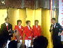 中京女大からアテネ五輪へ向かう伊調千春(48kg級)、吉田沙保里(55kg級)、伊調馨(63kg級)の3選手の壮行会が7月16日、名古屋市内のホテルで株式会社リプレと愛知県レスリング協会などによって行われ、約700人もの招待客が3選手とコーチとしてアテネへ向かう栄和人監督を激励した。