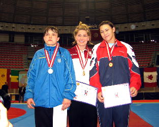 同3位決定戦では、元欧州チャンピオンのタチアナ・ラザレバ(ウクライナ)が02年世界3位のイダテレス・カールソン(スウェーデン)相手にフォールで勝って、ウクライナの五輪全階級出場を決めました。(写真左は、左からギアムピコロ、リー、ラザレバ)