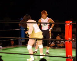 1990・91年の世界女子選手権65kg級で優勝し、現在はAACCゴールドキッズで少年少女選手にレスリングを指導している成国(旧姓飯島)晶子さんが11月13日、東京・新宿FACEで行なわれた吉田万里子興行のプロレスイベント「息吹」に参戦した。