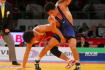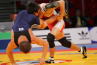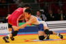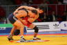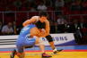 【2P】湯元は中盤、崩してタックルを決め1−0へ。もう1度タックルを仕掛け、豪快にマットへたたき落として3点を取ったものの、勢いがつきすぎて返され、バックを取られた。それでもスコアは4−1。残り40秒を慎重に闘い勝った。