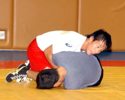 しかし練習環境がいい。日体大での練習では、1階級下には今夏五輪V2王者を破った松永共広(ALSOK綜合警備保障)、1階級上には03年世界3位でありアテネ五輪5位の池松和彦(K−POWERS)、そして世界選手権の代表をプレーオフで争ったアジア3位の小島豪臣(前述)らと一緒。3人とも全日本王者なのだから、“毎日が全日本合宿”と言ってもいい厳しさの中で練習しており、この中で鍛えられれば、世界で勝てるレスリングを無意識のうちに身につけられようというもの。