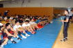 両スタイル合同のマットワークとなったこの日は、富山英明強化委員長があいさつ。最後の心構えを教えるとともに、現在エジプト・カイロで行なわれている柔道の世界選手権を引き合いに出し、「柔道に負けないように頑張ろう」と激励した。