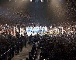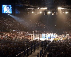 8月28日、さいたまスーパーアリーナで行なわれた総合格闘技イベント「PRIDEミドル級GP決勝戦」で、レスリングの世界選手権代表チームがリング上に上がり、4万7629人(超満員)の観衆に世界選手権での健闘を誓った。