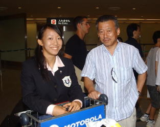 船津薫・東洋大前監督は次女の友里選手の出迎え。