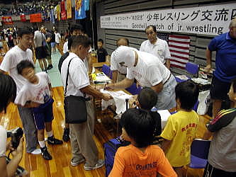サインに応じる元プロレスラーのザ・デストロイヤーさん。