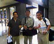 世界ベテランズ選手権出場選手が出発 7月20〜25日にセルビアモンテネグロのベオグラードで行なわれるグレコローマンの世界ベテランズ(35歳以上)選手権に出場する曾根田昌弘(神奈川県、41〜45歳・58kg級)、小松誉憲(神奈川県、41〜45歳・69kg級)、河本勲(東京都、同)の3選手が7月20日、成田空港を出発した。 現地で米国在住の八田正朗(56歳以上・58kg級)と合流する。 (撮影=武田明子) 《前ページへ戻る》
