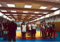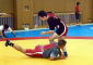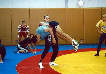 練習前には8月のユニバーシアード(トルコ・イズミール)の松下三郎選手団長(日本ユニバーシアード委員会委員長・全日本柔道連盟副会長・専務理事)が訪れ、選手に激励の言葉をかけ、ドイツチームにも「welcom!」と、にこやかに歓迎のあいさつ。続いてレスリングの伴義孝団長(関大教)、滝山将剛監督(国士大教)があいさつ。滝山監督は、整列の時に「きちんと並べ!」とやり直しをさせ、「女子選手は上を向いて堂々としているのに、男子は下を向いたままだ。こんな状態では勝つことができない!」と厳しく指摘した。