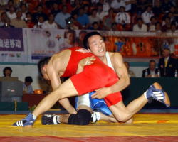 デフェンディング・チャンピオンとしてアジア選手権に臨んだフリースタイル66kg級の池松和彦(K−POWRES)は、準決勝でアテネ五輪で勝った韓国選手にリベンジされて決勝進出を逃し、3位に終わった。「反省することが多かった。技が中途半ぱでまとまりがなかった。欠点がすべて出た」と、不満いっぱいの銅メダル。
