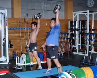 筋力アップに励むグレコローマン選手。