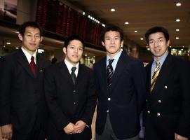 これで男子両スタイルとも冬の遠征を終了。4、5月にいずれも東京で計3度の合宿をこなし、5月24日からのアジア選手権(中国・武漢)へ挑む。(写真は、左から菅、平井、松本、伊藤広道監督)